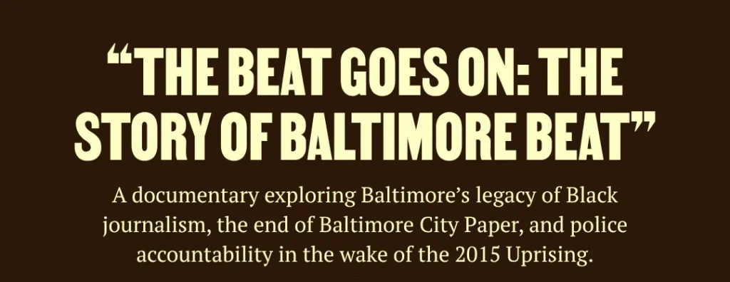 Join us for a documentary exploring Baltimore’s legacy of Black journalism, the end of Baltimore City Paper, and police accountability in the wake of the 2015 Uprising.