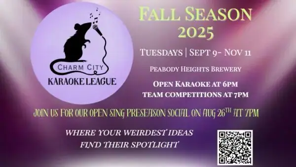 Tuesday, Nov. 25 6:00 pm - 10:00 pm Charm City Karaoke League – Fall Season Charm City Karaoke League – Fall Season View Details