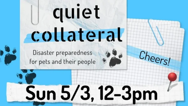 Sunday, May. 3 12:00 pm - 3:00 pm Quiet Collateral – Disaster Preparedness for Pets & Their People View Details